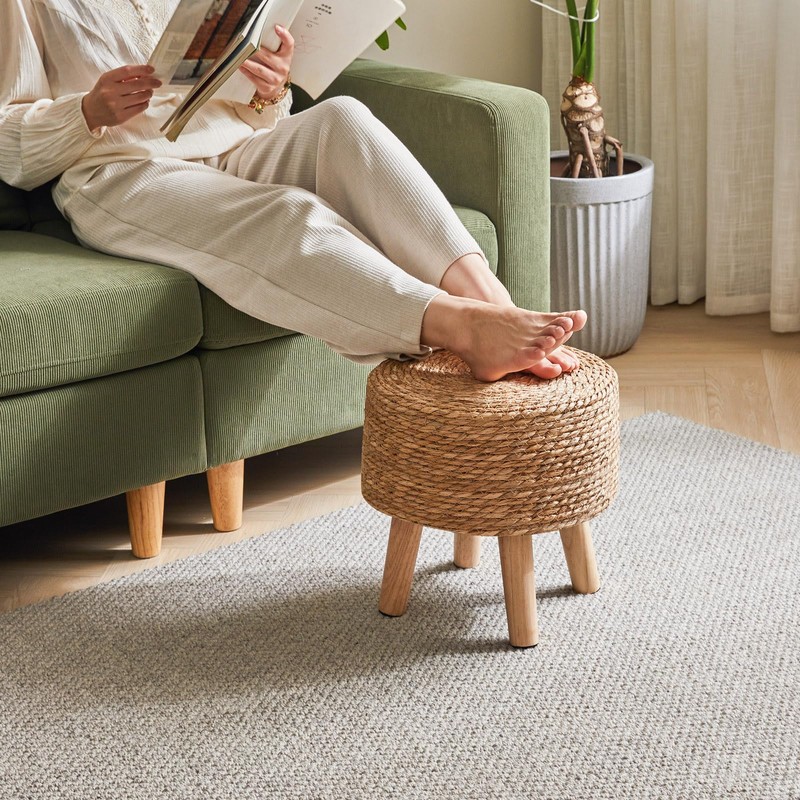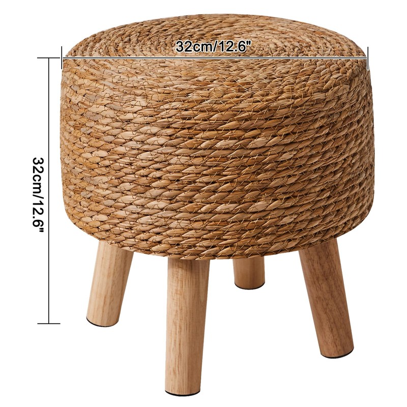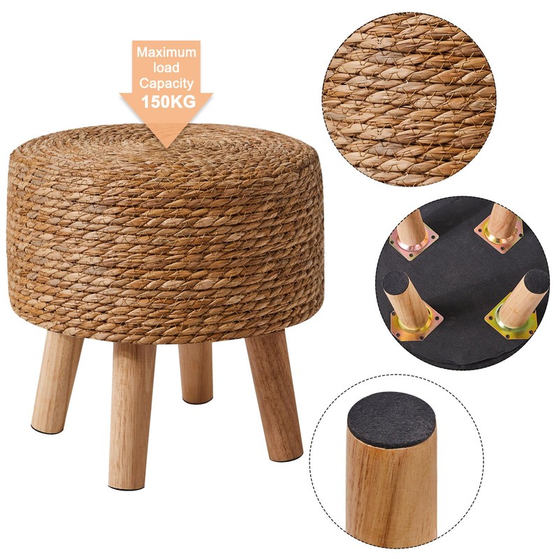 - Solid construction: Our footstools are all meticulously crafted with hand woven seaweed and solid wood frames. wooden frame and four solid New Zealand imported pine legs make the round stool lightweight but sturdy, with a long service life, capable of bearing 250 pounds