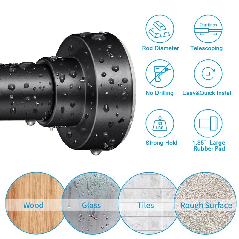- No Drilling Installation: Black shower rod can be installed without drilling or any tools. Simply assemble the rod according to its size and rotate the telescopic rod to fix it to the wall without damaging the mounting surface