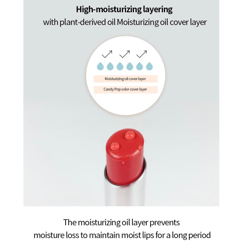 • High-moisturizing layering with plant-derived oil moisturizing oil cover layer, The moisturizing oil layer prevents moisture loss to maintain moist lips for a long period