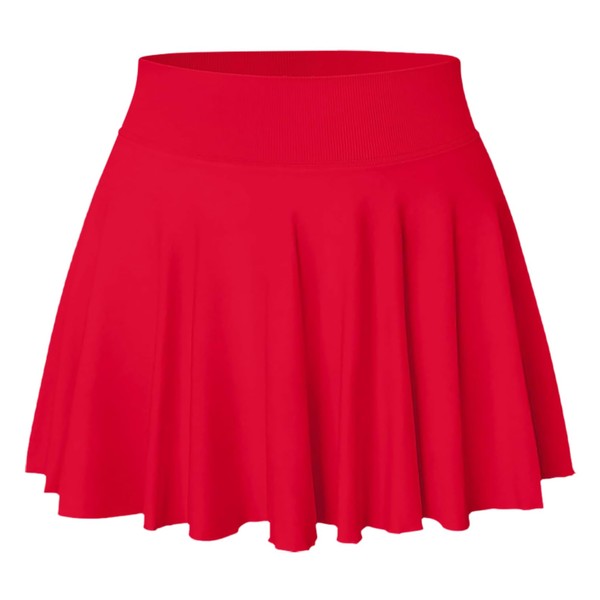 YOAKAKU Pleated Tennis Skater Skirts for Women with Pocket Shorts Flowy Golf Athletic Skort Sports Mini Skirt Red