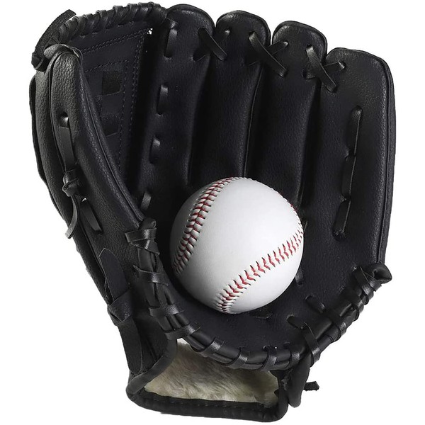 YOASONEK Baseball Glove, Softball Mitt,Catcher's Glove, Comfortable Baseball Mitt and Baseball Set, for Kids Youth Adults Sports and Contest, Left Hand Glove, Right Hand Throw (12.5 Inch, Black)