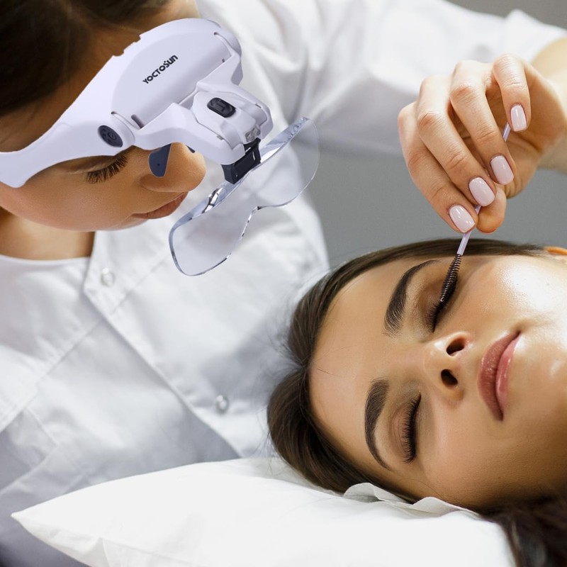 YOCTOSUN Head Mount Magnifier with 2 Led Professional Jeweler's Loupe Light Bracket and Headband are Interchangeable