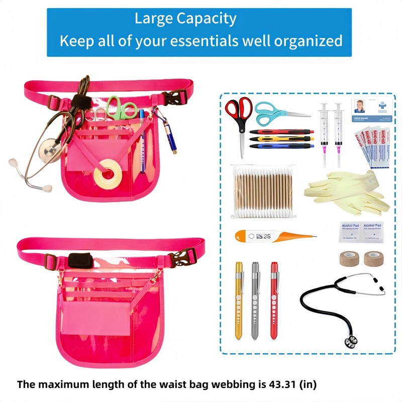 - 【Adjustable belt】The buckle-adjustable waistband can be better fixed to prevent slipping. The magic sticker design can fix the stethoscope, the quick access pocket can conveniently store the equipment and find it easily, and the transparent design provides visibility, helping nurses and other healthcare professionals save time and improve work efficiency.