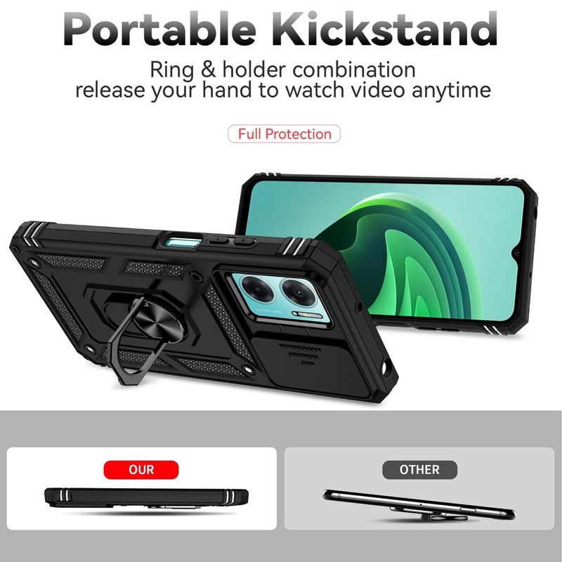 - Redmi Note 11E Kickstand Case,【Rotable Kickstand Design】The metal kickstand can rotate 360° horizontally, making it convenient to watch videos and movies hands-free with desired comfort and stability. Besides, built-in metal magnetic sheet for stable adsorption, which can be directly adsorbed to the magnetic car mount holder. (Not includes the magnetic car mount holder).