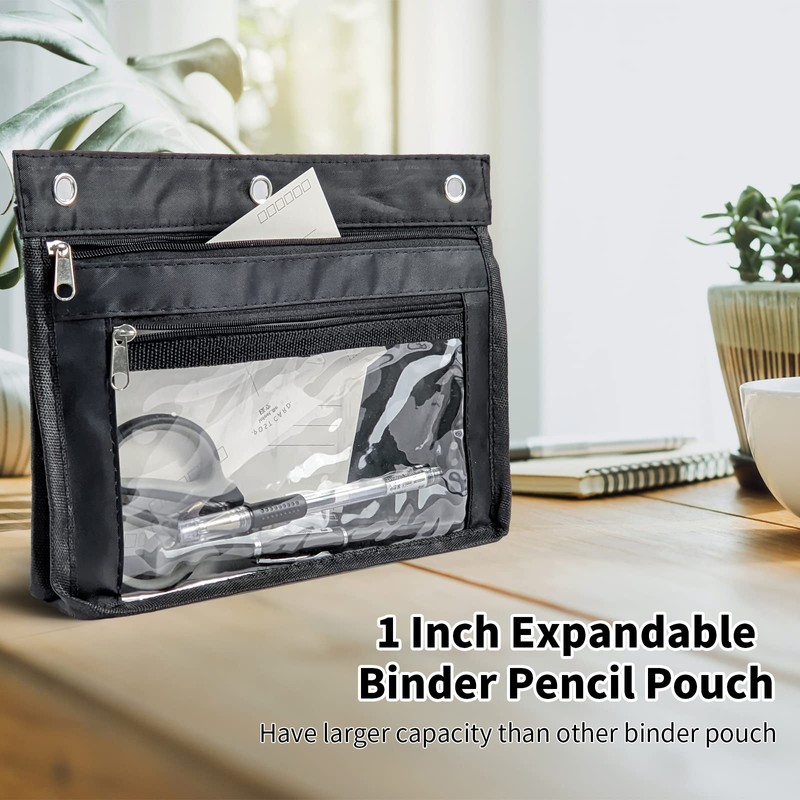 - Accordion: 1 inch expansion position. The unique expandable pencil pouch has a larger capacity than the normal 3 Ring Binder Pouch