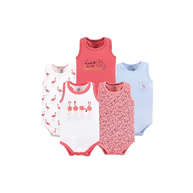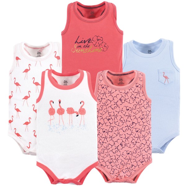 Yoga Sprout Cotton Bodysuit, 5 Pack, Flamingo, 12-18 Months