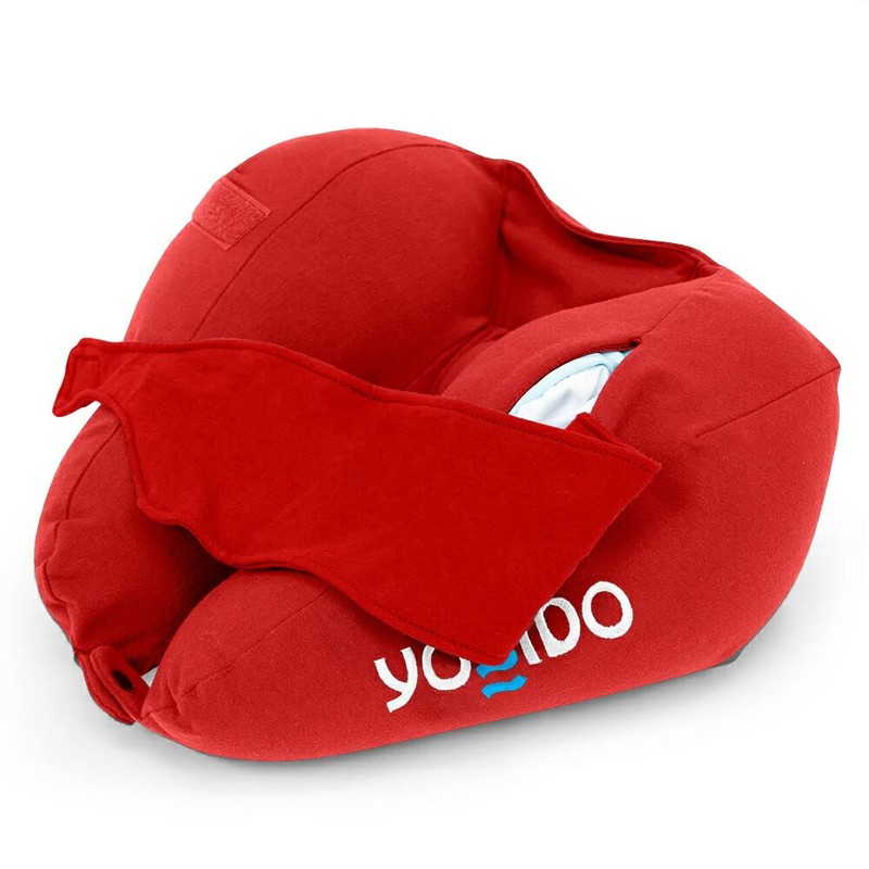Integrated eye mask and neck pillow.Perfect for sleeping on airplanes or trains.