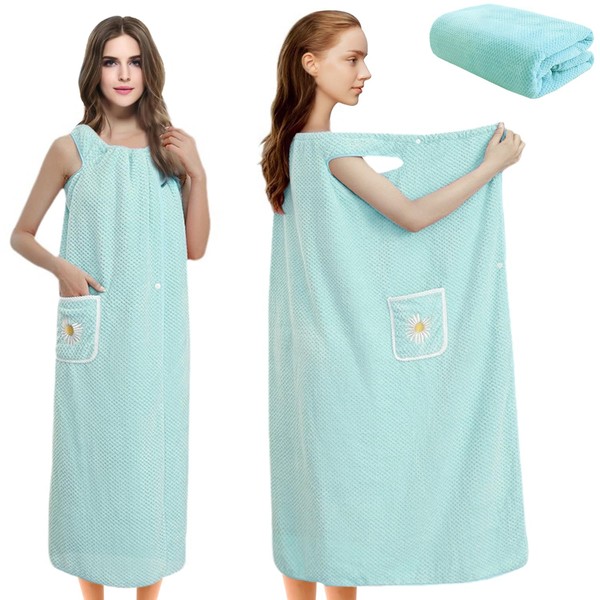 YOGONEV Bata de Baño Mujer Toalla Super Absorbente y Secado Rápido - Toallas de Baño Grandes para Adultos, Diseño Envolvente Spa/Hogar, Bata de Baño Mujer en Vellón de Coral Suave No Quitapelos(verde)