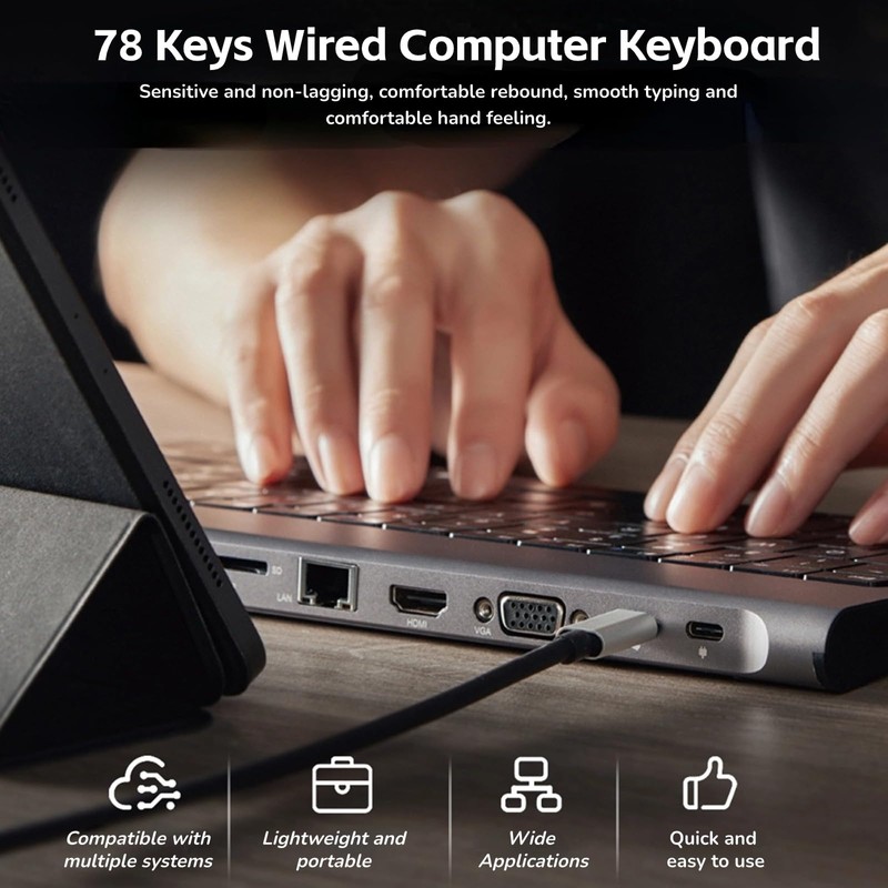 - Plug and Play: With our wired keyboard Hub, there is no need to continually change or recharge batteries like with keyboards. Simply plug and play, with no additional drivers required. Whether you are a designer, programmer, software developer, video editor, professional writer, or businessman, we guarantee that you will not be disappointed with this external keyboard. It is for every user who appreciates refined and intelligent design, as well as superb efficiency.
