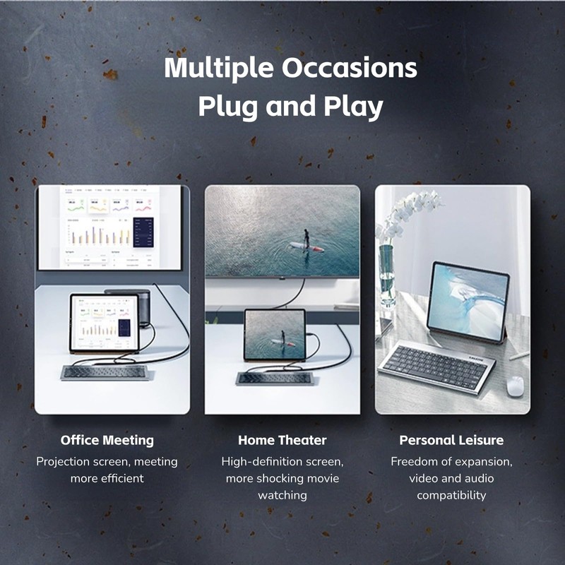 Interface: 4K HD Multimedia Interface, VGA, USB3.0x3, USB C 100W PD, USB C, 1000Mbps RJ45, Storage Card Slot, Memory Card Slot, 3.5mm AUX
