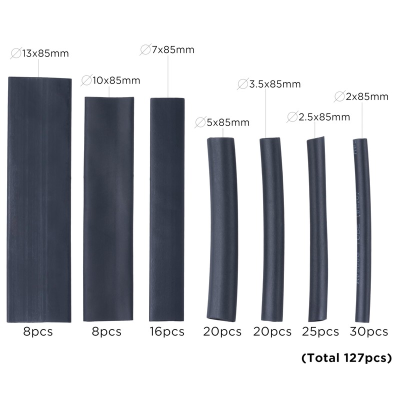 YoiYee Comprehensive 127 Piece Heat Shrink Tubing Kit, 7 Sizes Assortment, Black Cable Sleeves with 2:1 Shrink Ratio for Electrical Insulation