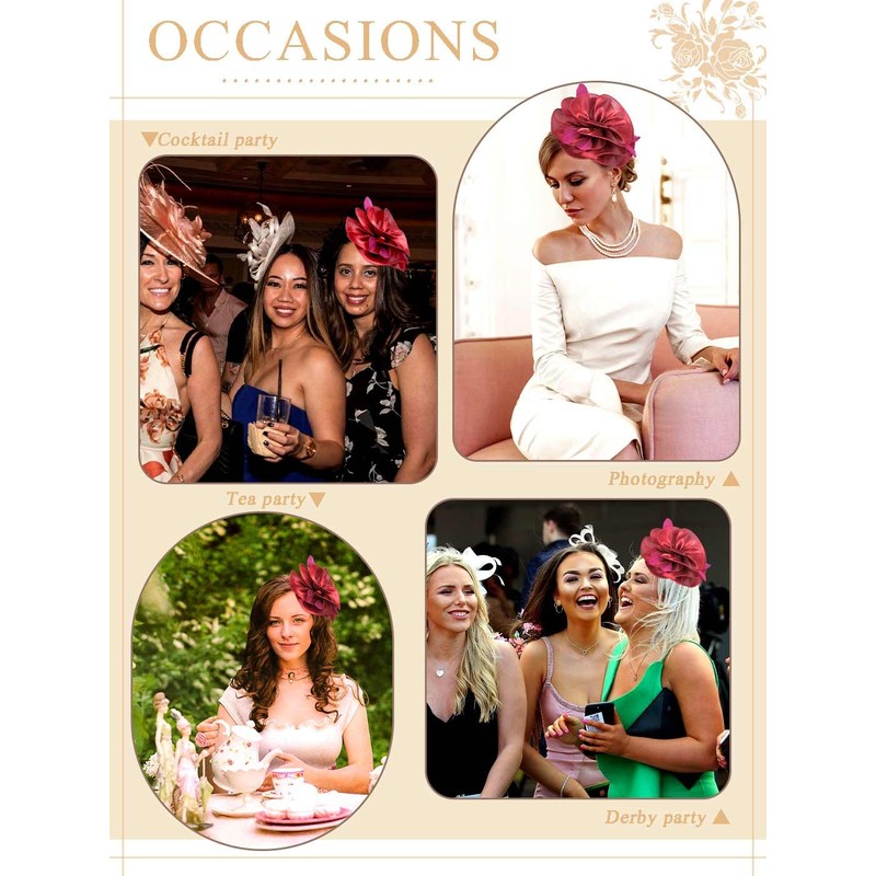 - Versatile Derby and Tea Party Accessory:Elevate your hats collection with this dual-purpose fascinator featuring convertible headband/clip design. Perfect for derby parties, garden weddings, or afternoon tea events where women's fascinator hats make bold fashion statements.