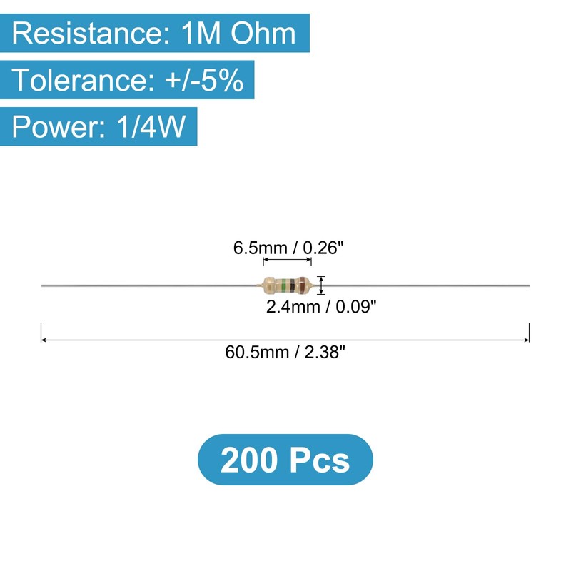 - SPECIAL DESIGNED - Resistance: 1M Ohm; Power: 1/4W, +/-5% Tolerance.