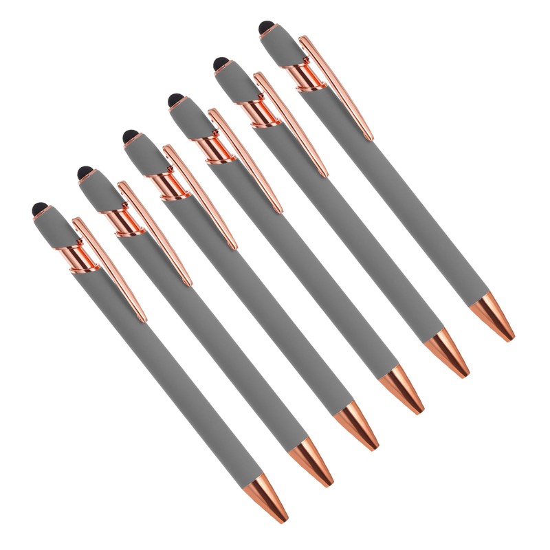 YOKIVE 6 Pcs Ballpoint Pen with Stylus Tip, 2 in 1 Black Ink Metal Stylus Pen 1.0mm Medium Point Style 2, Great for Touch Screens, Office, Studios (Gray)