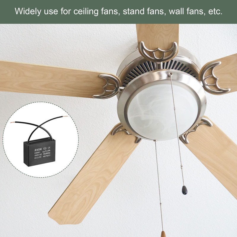 MULTIPURPOSE - Our fan capacitor is great for office, home, and daily use, it can control the starting and running speed of kinds of fan motors such as ceiling fans, stand fans, wall fans, range hood fans, air exchange fans and can also be used for water pumps, generators, etc.