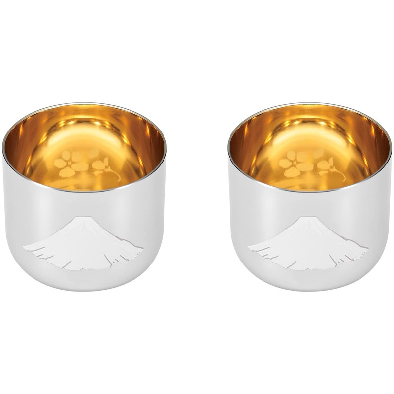 Yokoyama EJG-800 Japanese 3.4 fl oz (100 ml) Warm Guinaku Guinaku Red Fuji Inner Gold Plated (Cherry Blossom Pattern) 2PC