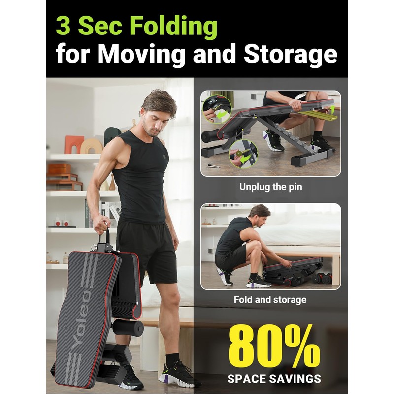 - 🆕 【Full Body Workout】Yoleo provides the effective adjustable weight bench. You can enjoy different exercises in it for the full-body such as bench press, chest press, shoulder press, reverse fly, row, incline curl and tricep dip.