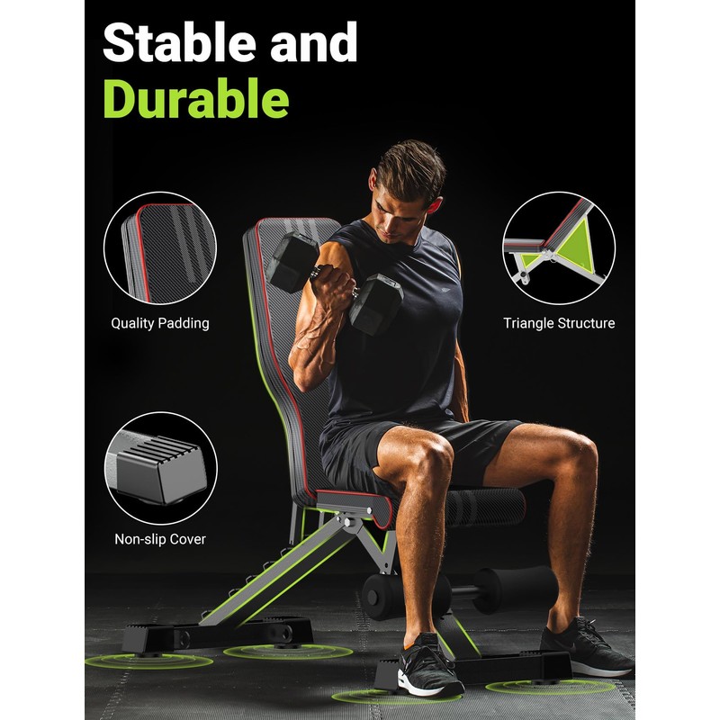- 🆕 【Stable Structure】Heavy duty steel make this weight bench a sturdy support for the toughest workouts. Mechanics construction based on the double-triangle structure and double supports create the best stability.