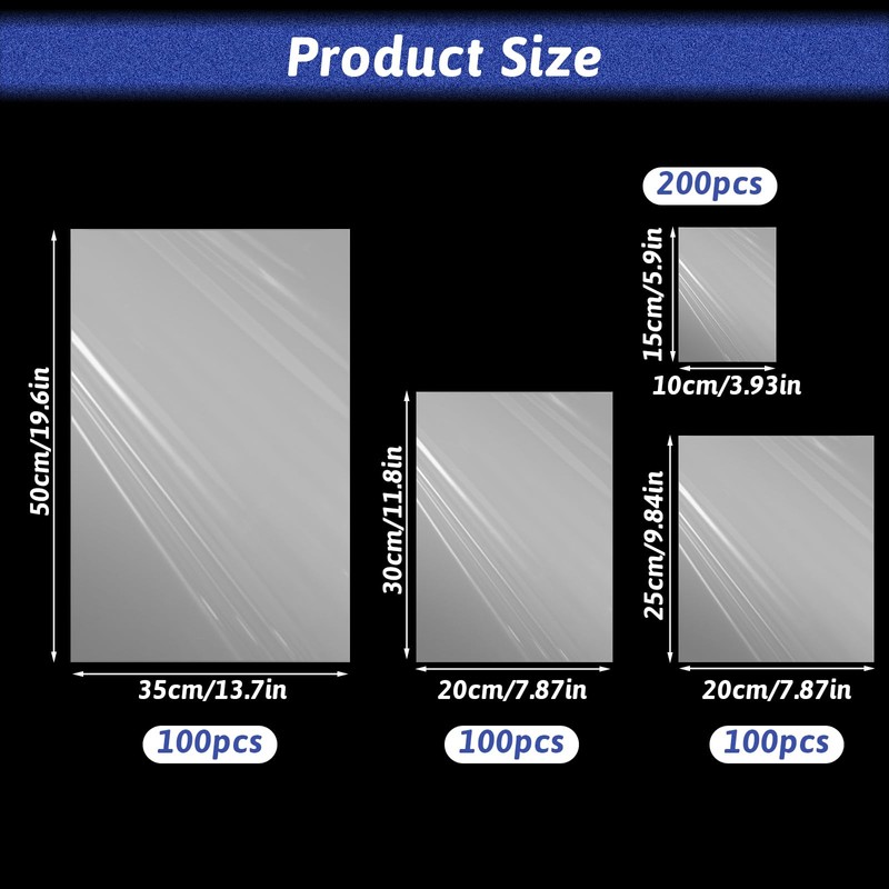 Product packaging list: 500pcs Thermoplastic film bag (10×15/200pcs+18×25/100pcs+20×30/100pcs+35×50/100pcs)