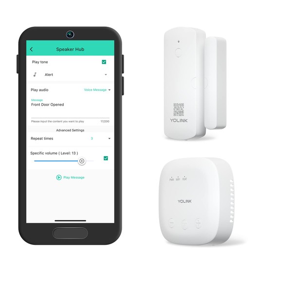 YoLink LoRa Smart Door Sensor Starter Kit: SpeakerHub Audio Hub & Door Sensor - Up to 1/4 Mile Range, Door Left-Open Reminders, up to 5 Year Batteries, Alexa, IFTTT, Home Assistant (2.4GHz WiFi Reqd)