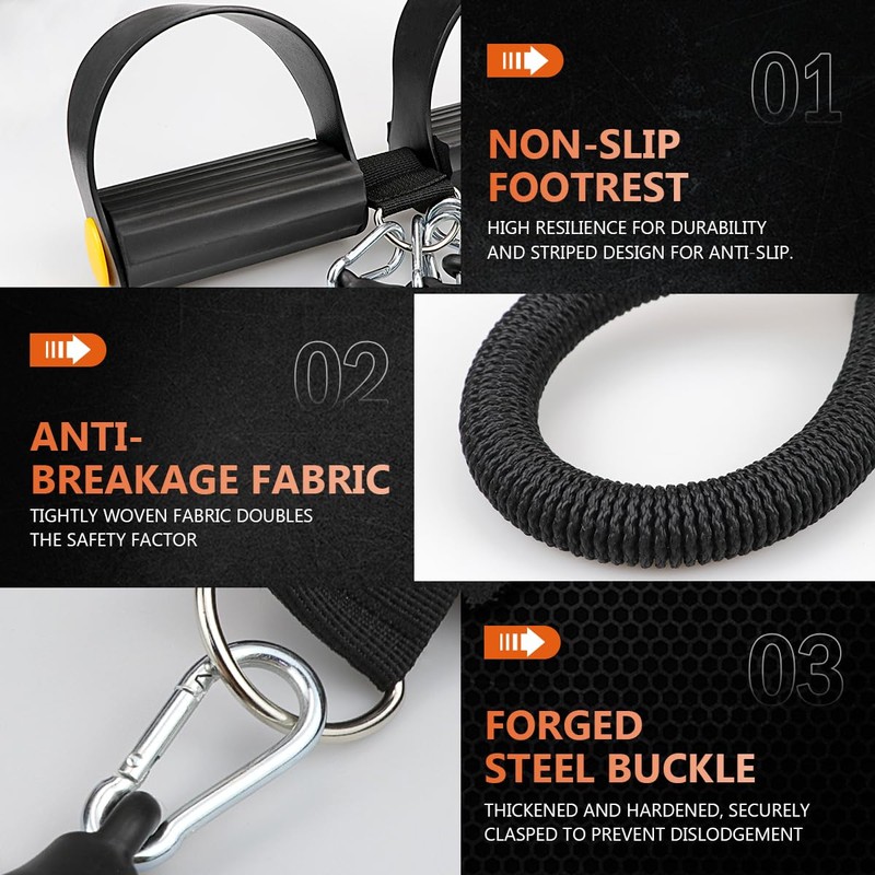 - Multi-Purpose Workout: The elastic pedal puller and resistance bands provide a variety of workout options. You can perform a variety of workouts such as squats, lunges, bicep curls, chest presses, tricep extensions and more.
