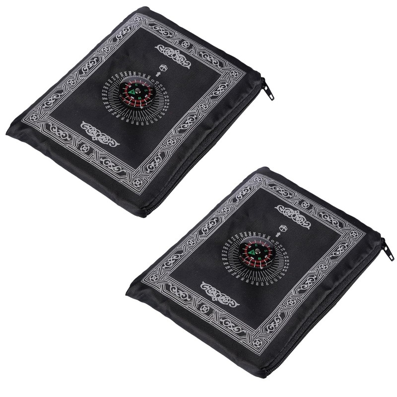 yolzhxe 2 Stück Pray Teppich Tragbar, Gebetsteppich mit Kompass, 100x60 cm Reisegebetsteppich, Weiche Muslimische Prayer Mat, Islamischen Gebetsmatte, Ramadan Eid-Geschenke für Männer Frauen, Schwarz