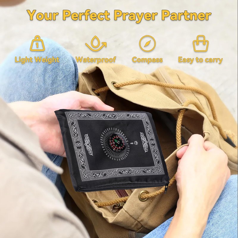 - Integrierter Kompass: Dieses Reisegebetsteppich verfügt über einen integrierten Kompass, mit dem Sie die Gebetsrichtung in verschiedenen Umgebungen leicht bestimmen können. Wenn Sie auf Reisen sind, können Sie sich darauf verlassen, dass gebetsteppich set eine genaue Gebetsleitung gewährleistet ist und Ihre Gebetsaktivitäten bequemer und reibungsloser verlaufen.