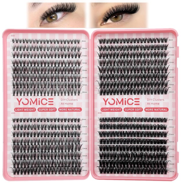 Yomice Wispy Cluster Eyelash Extensions 30D+40D+50D+60D Volume Lash Extensions 640Pcs Individual Eyelash Clusters 8-16mm Individual Cluster False Eyelashes D Curl Individual Cluster(30D-60D)
