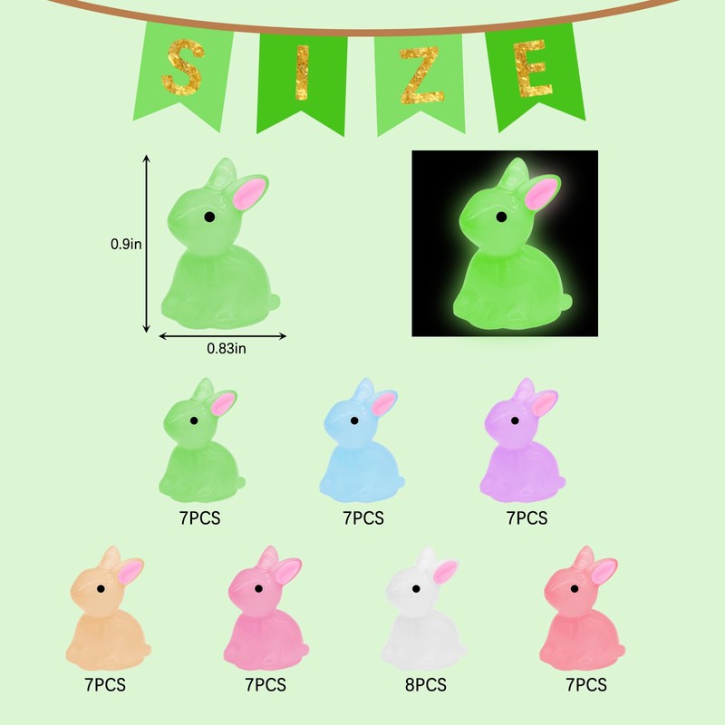 Yomwig 50Pcs Easter Luminous Mini Resin Bunnies, Tiny Rabbits Figures for Easter Egg Fillers, Mini Bunny Glow in The Dark, Tiny Rabbits for Party Supplies Fairy Garden Home Decor