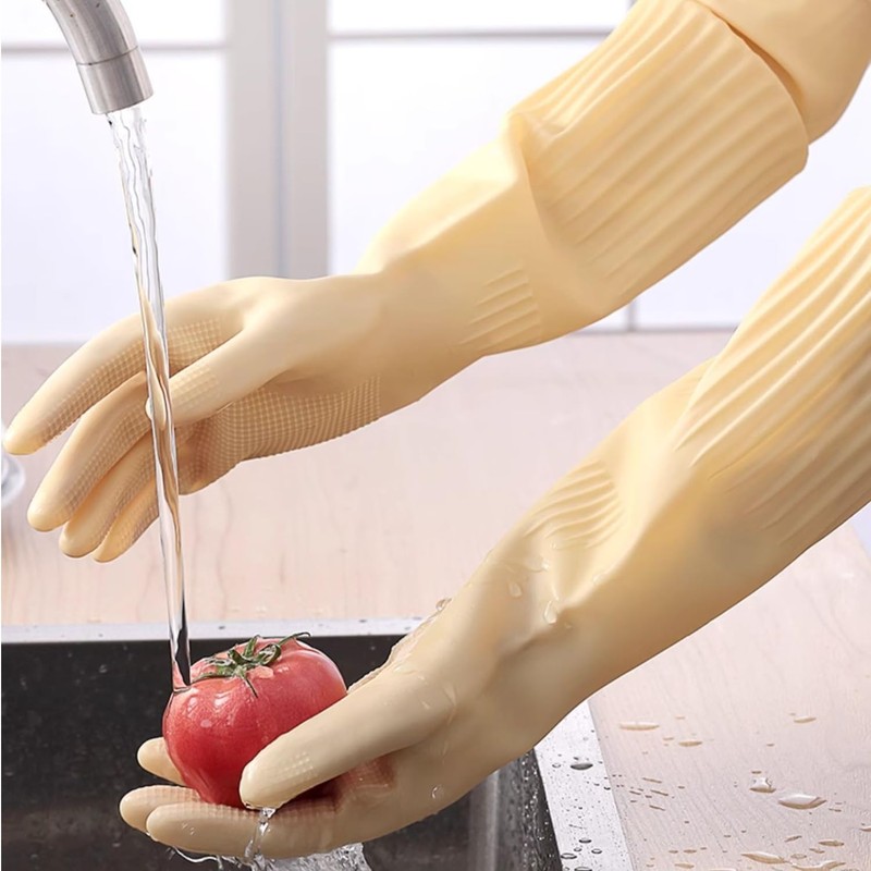 - 【EXTRA LONG LENGTH】The lengthened design is longer than ordinary cleaning gloves, prevent effectively the glove from entering the water.Say goodbye to soggy sleeves and hello to a cleaner, the extra-long cuffs provide full coverage; prevents splashes and leaks; safeguards your hands and extending protection to your arms.