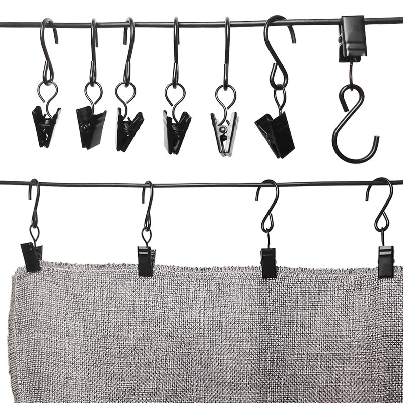Yongilan S-Hook Stainless Steel Curtain Clips, Pack of 50 Hanging Curtain Hooks, Garden Patio Decor, Artwork Display, 2.4 Inch Long Black