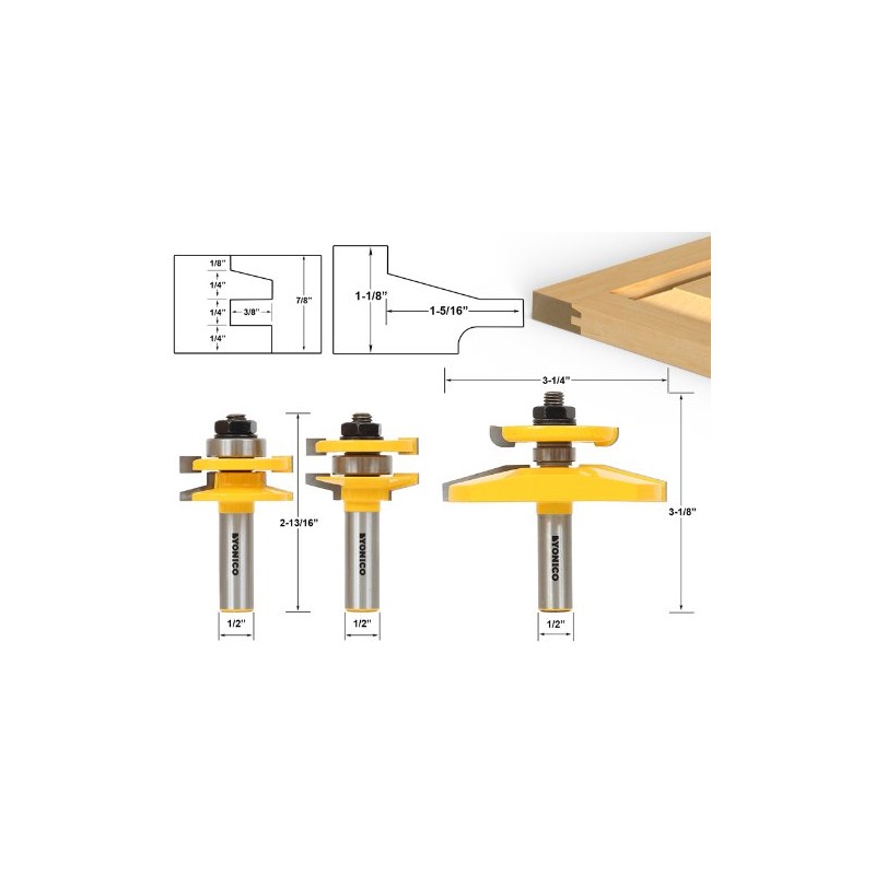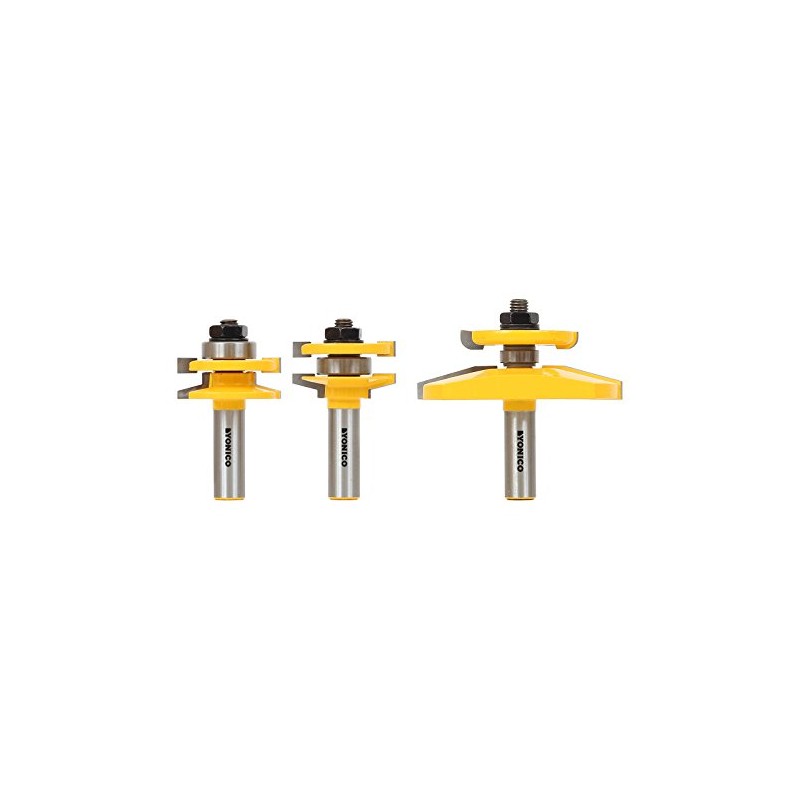 YONICO 3 Bit Raised Panel Cabinet Door Router Bit Set with Back-Cutter Panel Raiser (Shaker - 1/2" Shank)