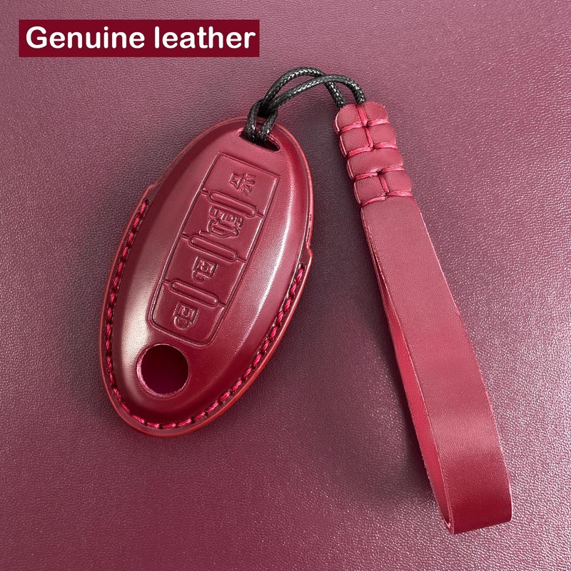 Yonmcfn Key fob Cover Genuine Leather with Keychain,Leather Key Case Protector,fit 4 Buttons Smart Remote Key(Red)