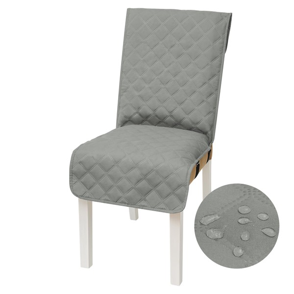 Yonus Waterproof Dining Chair Cover Office Chair Cover Water Resistant Dining Room Chair Cover Kitchen Chair Slipcover Computer Chair Cover with Anti-Slip Buckle (Light Grey, 1PCS)