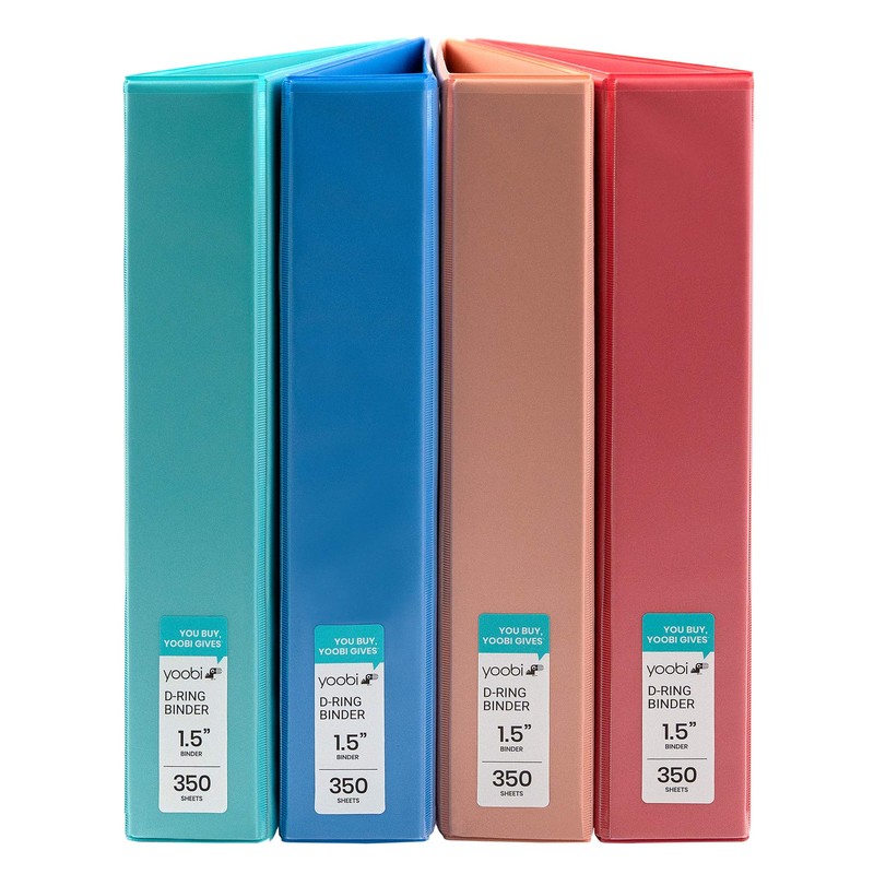 Yoobi | 3-Ring Binders | 1 1/2 Inch D-Ring | Solid Multicolor Variety Pack of 4