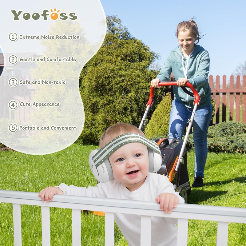 - Hearing Protection: Babies' eardrums are fragile, and every year many babies suffer hearing loss due to long-term exposure to noise. It is very important for parents to buy suitable baby earmuffs noise protection. Yoofoss noise-canceling baby headphones protect babies' sensitive ears from irritating noise anytime, anywhere, providing the best hearing protection. Our baby headphones reduce harmful noise while retaining ambient sound. Let you and your child play safely in any environment.