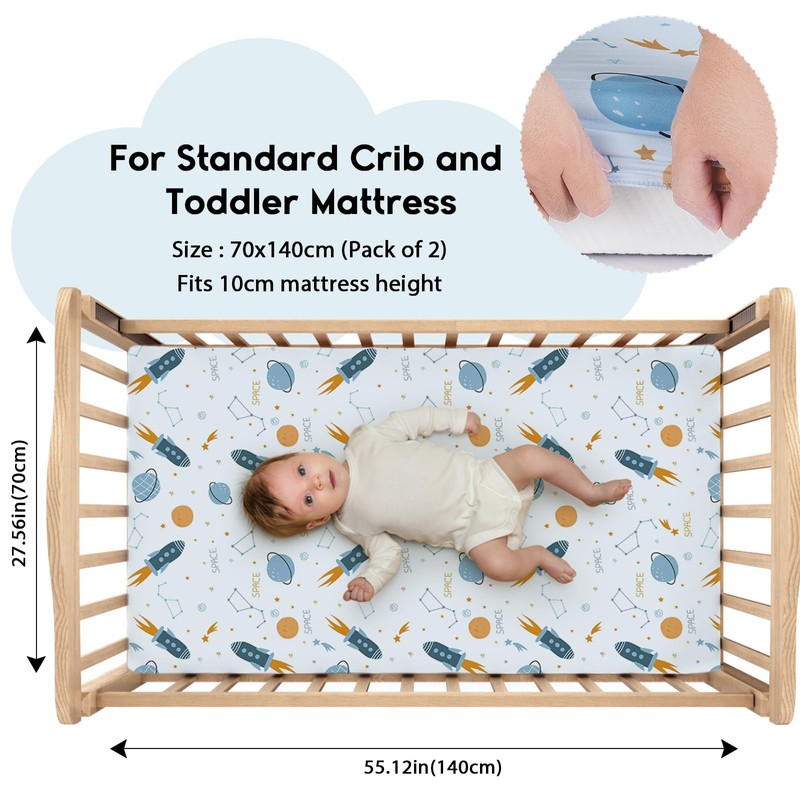 - Ideal Fit for Standard Cribs: Measuring 140cm x 70cm, our fitted cot sheets are designed to fit most standard cribs and infant mattresses seamlessly. This set includes two sheets, ensuring you always have a clean one on hand when you need to replace a soiled sheet.