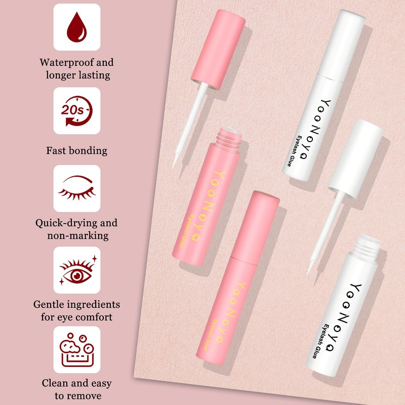 YOONOYA Eyelash Glue, Pack of 2 (2 x 8 ml), Latex Eyelash Glue, White Eyelash Glue, Clear, Durable (16 ml 0.56 oz)