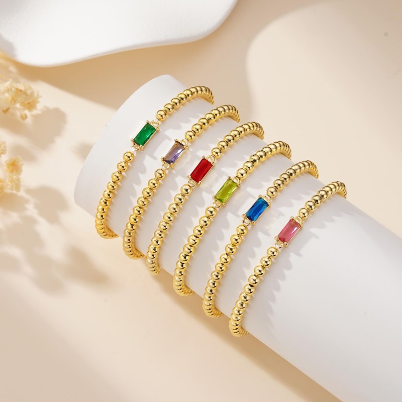- Size:Beaded Bracelets :6.5''.With Four Strong Elastic String.Gold bead size:4mm. Pendant: 5.3*9.3mm (without outer ring).Birthstone charm size:square-4*8mm.Perfect for all wrists, easy to put on and take off.