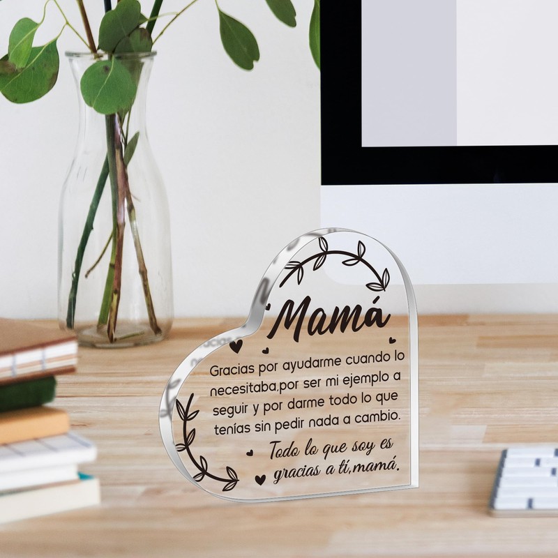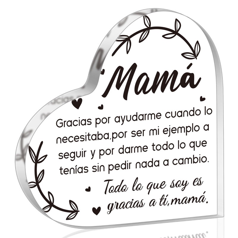 Yopyame Spanish Mom Acrylic Gifts - Regalos para Mamá Heart Acrylic Plaque for Office Deck Decor Ideas Keepsake Paperweight for Mom in Spanish Mother's Day Christmas Gifts for Mamá from Daughter Son