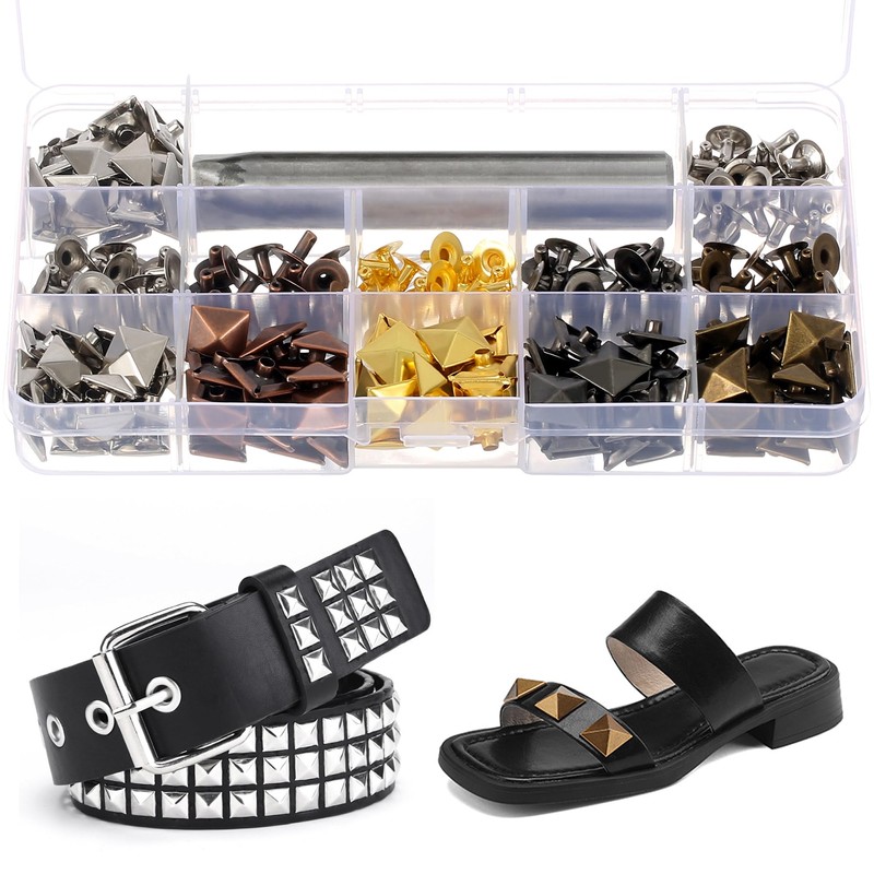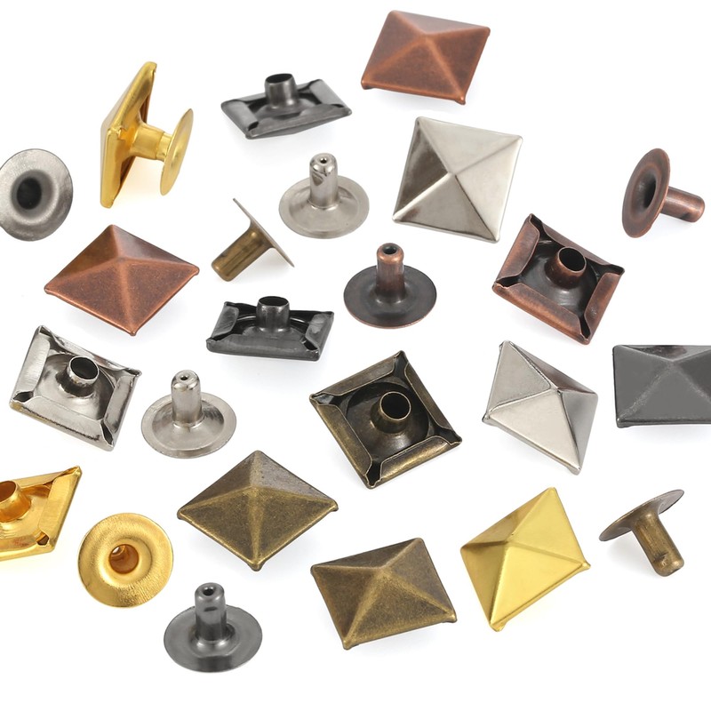 - Package Contents: The leather rivets kit included 120 sets square pyramid rivets, along with 2 pcs install tools in a clear plastic storage box; Which can meets your most needs of repair and decorates leather crafting