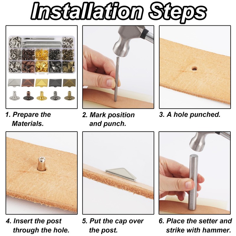 - Easy to Use: The leather rivets kit come with 2 pcs setting tools and installation step instructions, you will quickly figure out how to use it even you're a novice