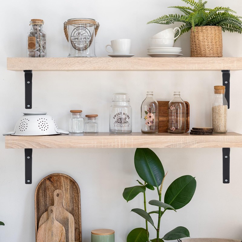 Yorkereynom Shelf Bracket, Set of 6, Wall Hanging, Hanging Shelf Brackets, L-Shaped, Stainless Steel, Load Capacity: 5.1 lbs (25 kg), 5.9 x 4.9 inches (150 x 125 mm), Screws Included, Kitchen, Room, DIY, Storage, Black