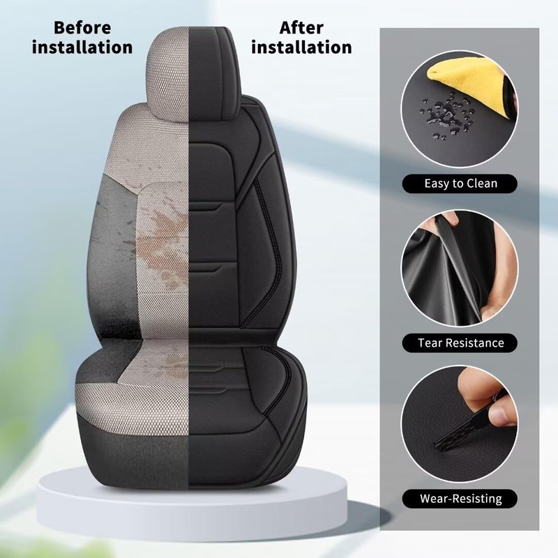 - 🚘【Premium Material Design】The car seat covers made with premium synthetic leather and high-density sponge, the five-layer design ensures excellent comfort and durability. Feels softer and more comfortable. Seat cover set easy cleaned by wiping it with a wet towel.