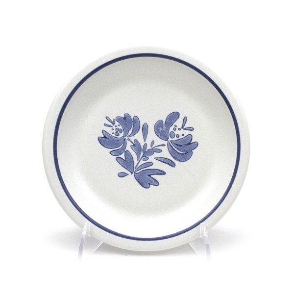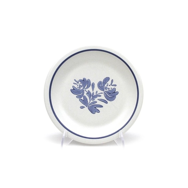 - Yorktowne by Pfaltzgraff, Stoneware Dinner Plate, Active Pattern: No, Circa: 1967, Size: 10-1/4", Blue trim with a blue floral center on a grey background., Plate used for holding the main meal.