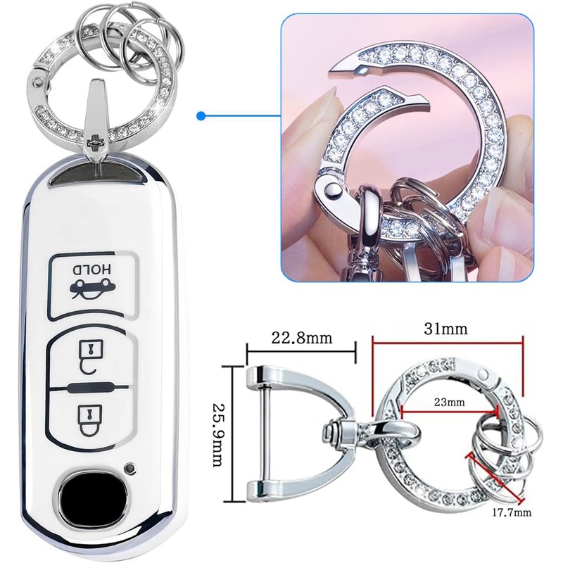 [yoshinari] MAZDA Dedicated Mazda Key Case cx5 cx3 cx8 Axela Atenza demio Advanced Key Luxury Stylish Smart Key Protective Case Full Cover (Set, 3 Buttons, White), set, 3 button white