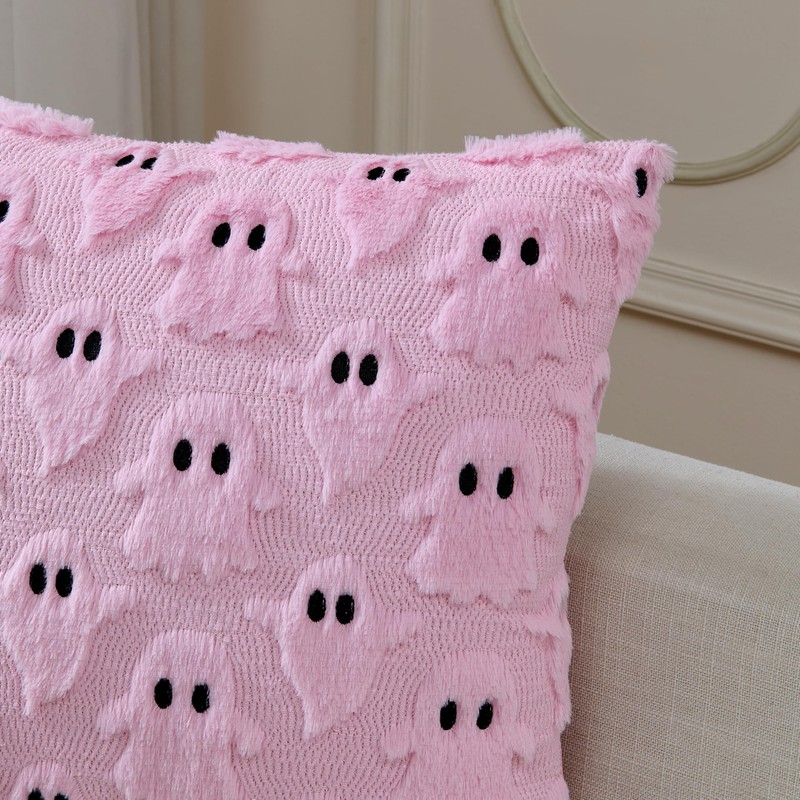 YOSICHY Halloween Decorations Pillow Covers 18x18 inch Set of 2 Pink Ghost Throw Pillow Cases Soft Plush Faux Fur Wool Decorative Cushion Case for Sofa Couch Bed Chair Living Room Home Decor