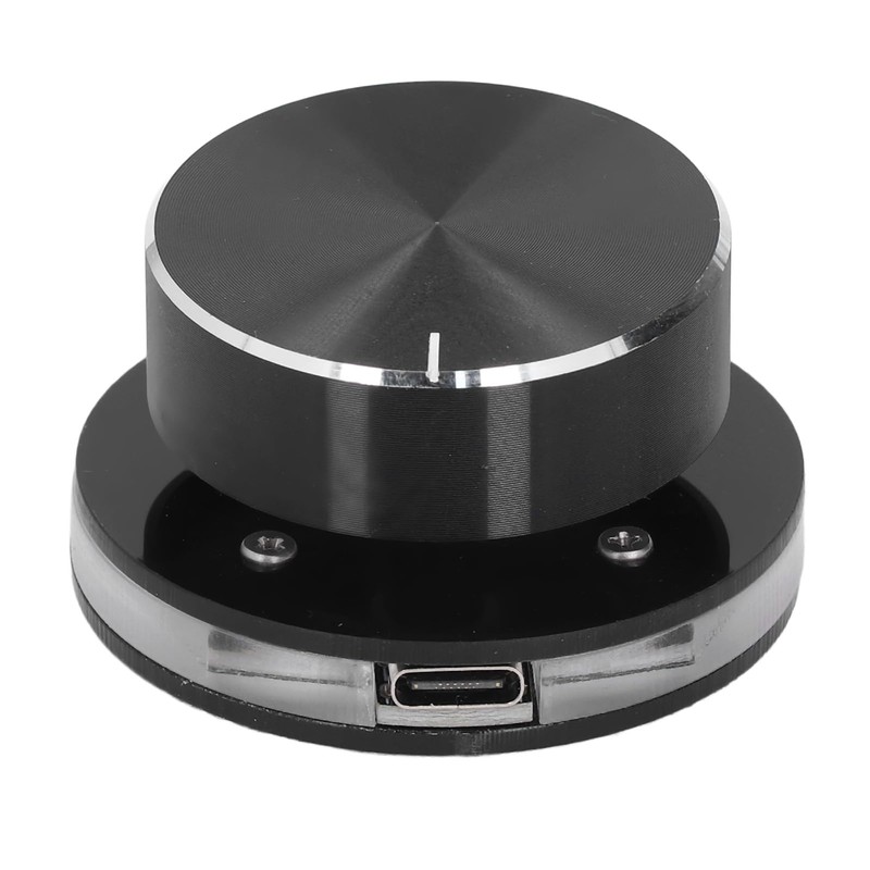 Dynamic RGB Lighting: This volume control knob features vibrant RGB lighting, adding an eye-catching aesthetic to your workspace. With a Type C interface for easy connection, the strong acrylic and PC materials ensure stability while providing a captivating visual experience.