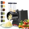 - 6 IN 1 ELECTRIC CHEESE GRATER: The electric cheese shredder features 6 interchangeable types of stainless steel blades. The six groups of blades are 4mm shredding blade, extra coarse shredding blade, grinding blade, 2mm slicing blade, wave slicing blade, 2mm shredding blade, so you can effortlessly tackle a variety of ingredients. NOTE: Cheese is easier to slice or shred when kept refrigerated and has some firmness