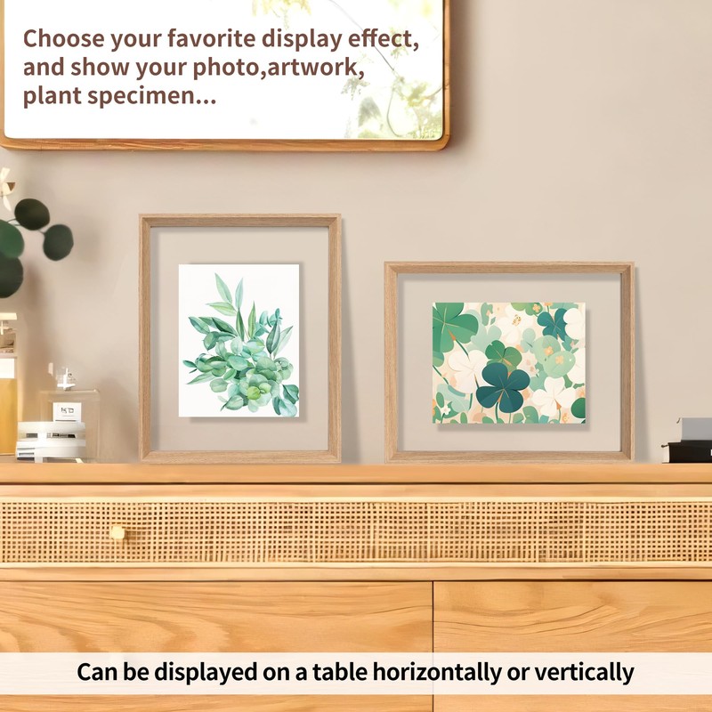 - 【Floating Picture Frames】 - YOTINTIN floating photo frames with double real glass set of 2 are fits smaller size pictures like 6x8, 8x8,10x10 or any size photos smaller than 12x12 to make an illusion for the photos look like floating. Table display or wall mounted-either horizontally or vertically. If you want the photo to look floating, please make sure you order a size up.